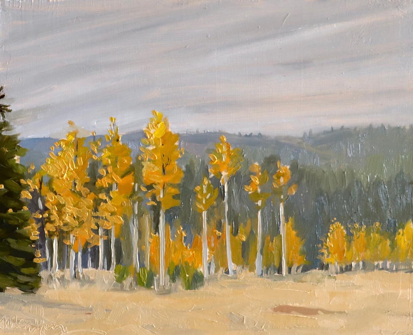 Aspen Grove at the Vesper Meadow - Original Plein Air Oil Painting