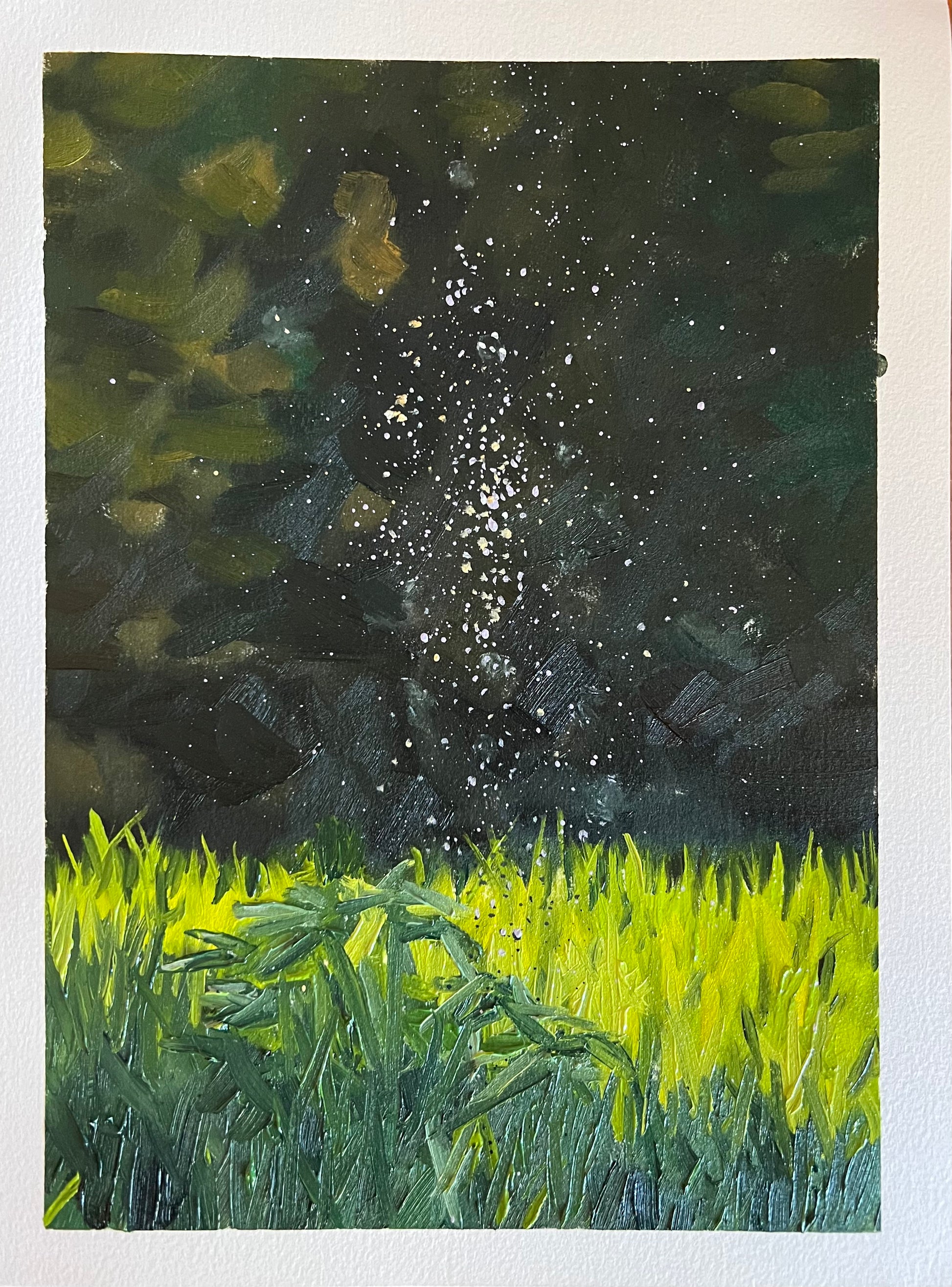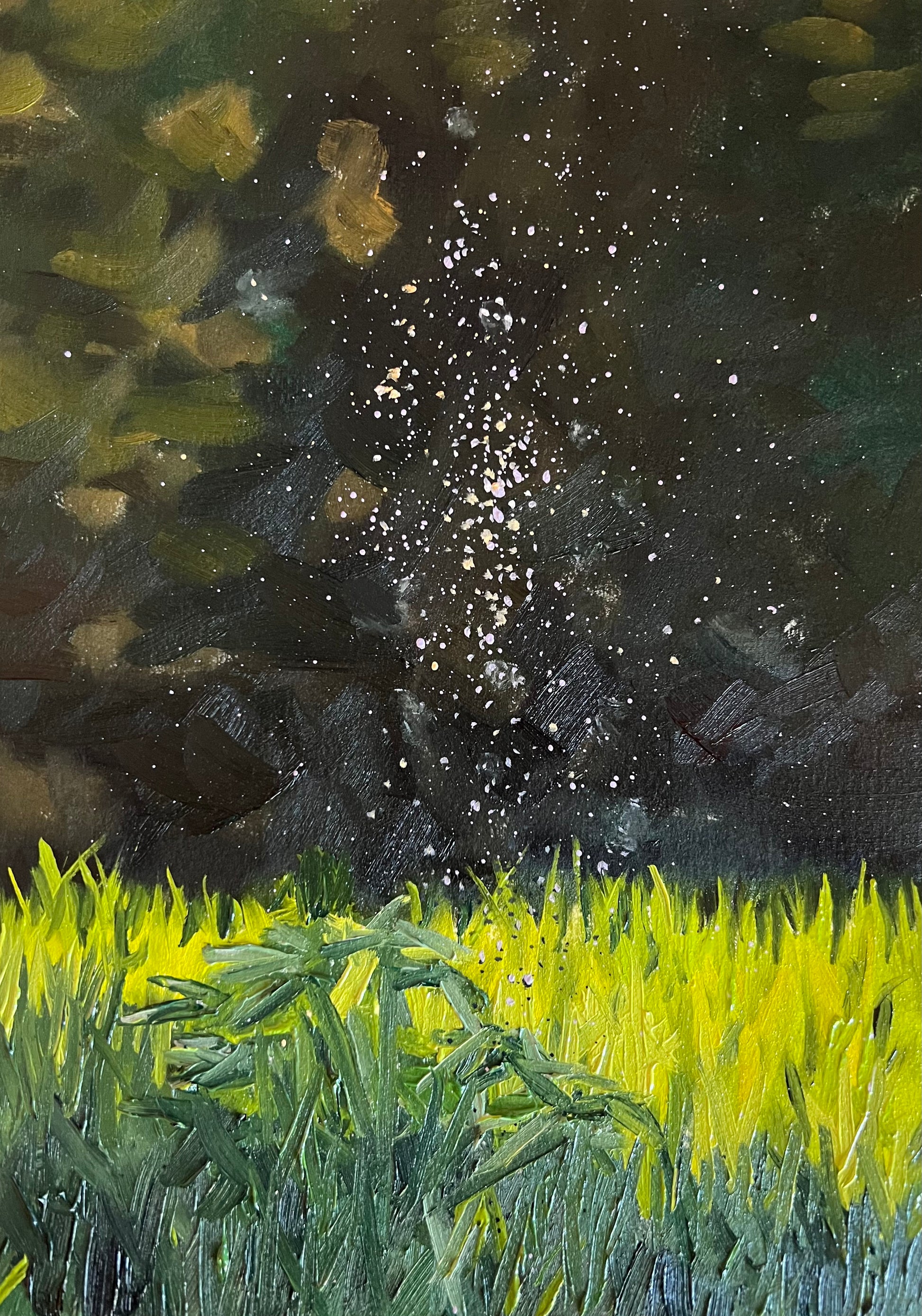 Original oil painting of gnats in the sunlight at Diamond Lake, Oregon in early July. There were so many bugs there, it was overwhelming. But, because there were so many bugs, the lake was teeming with biodiversity. There were so many birds, bugs and fish in and around the lake.