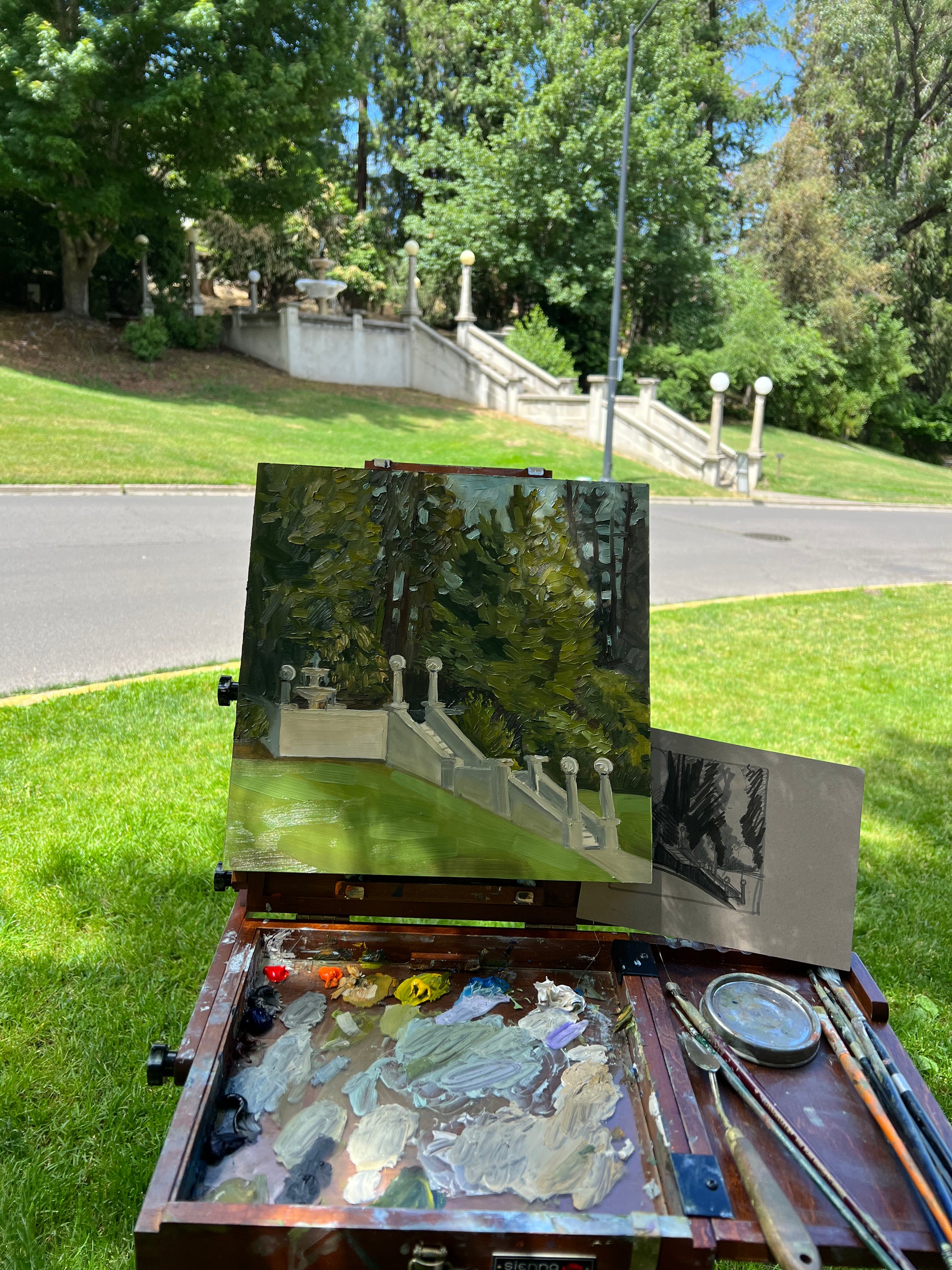 12" x 12" Original Oil on Birch Ampersand Panel - Plein Air painting done in Lithia Park, Ashland Oregon - during the Schneider Art Museum's 'Art Beyond' event in June, 2023.