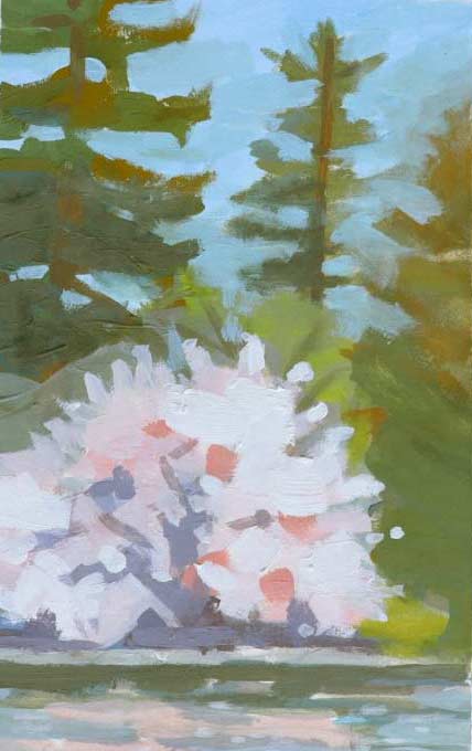 4" x 6" Casein on archival paper. Plein air painting - Lithia Park upper duck pond.
