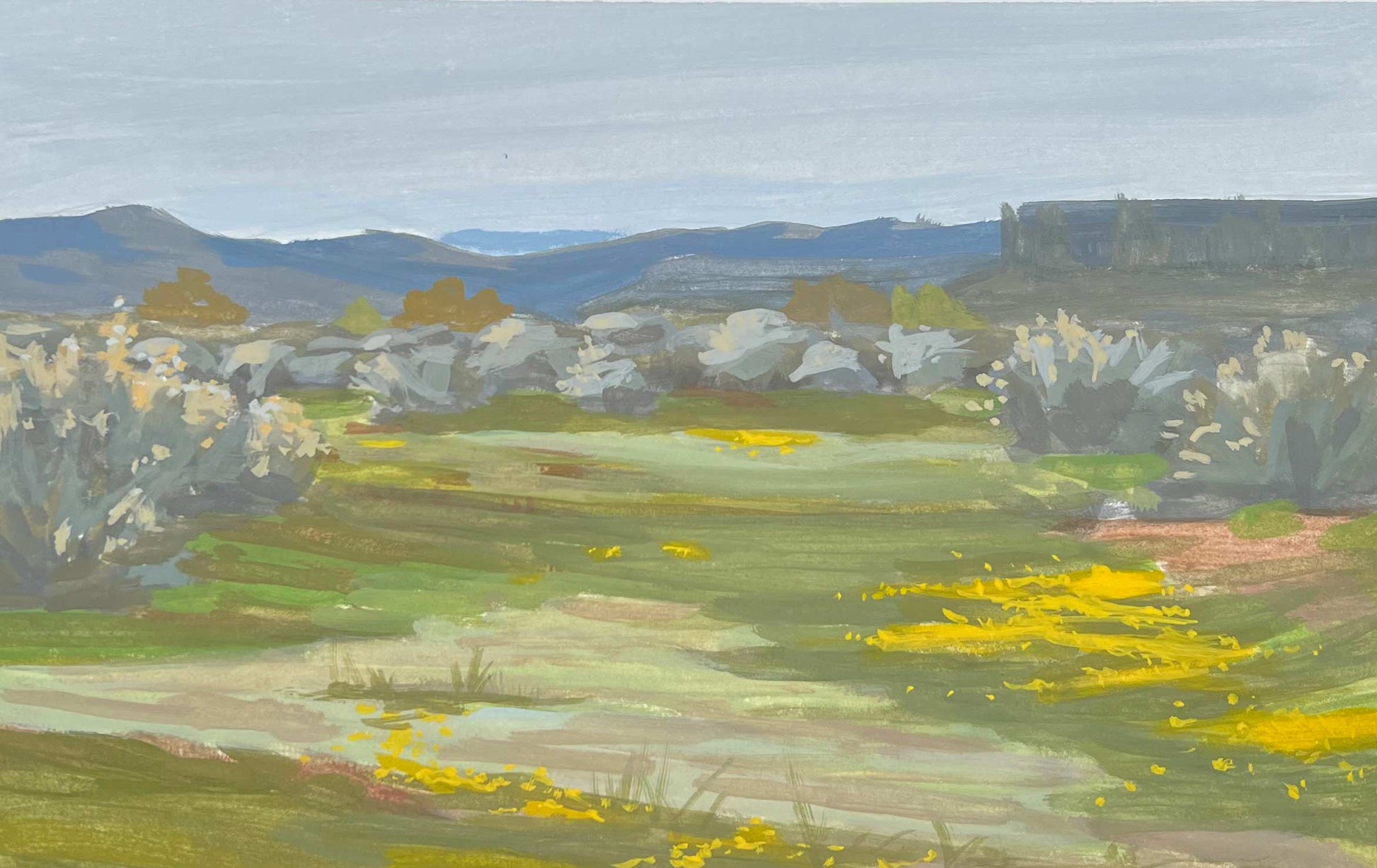 12" x 10" Casein on archival paper. Painting in the spring in southern Oregon at Whetstone Savannah preserve.
