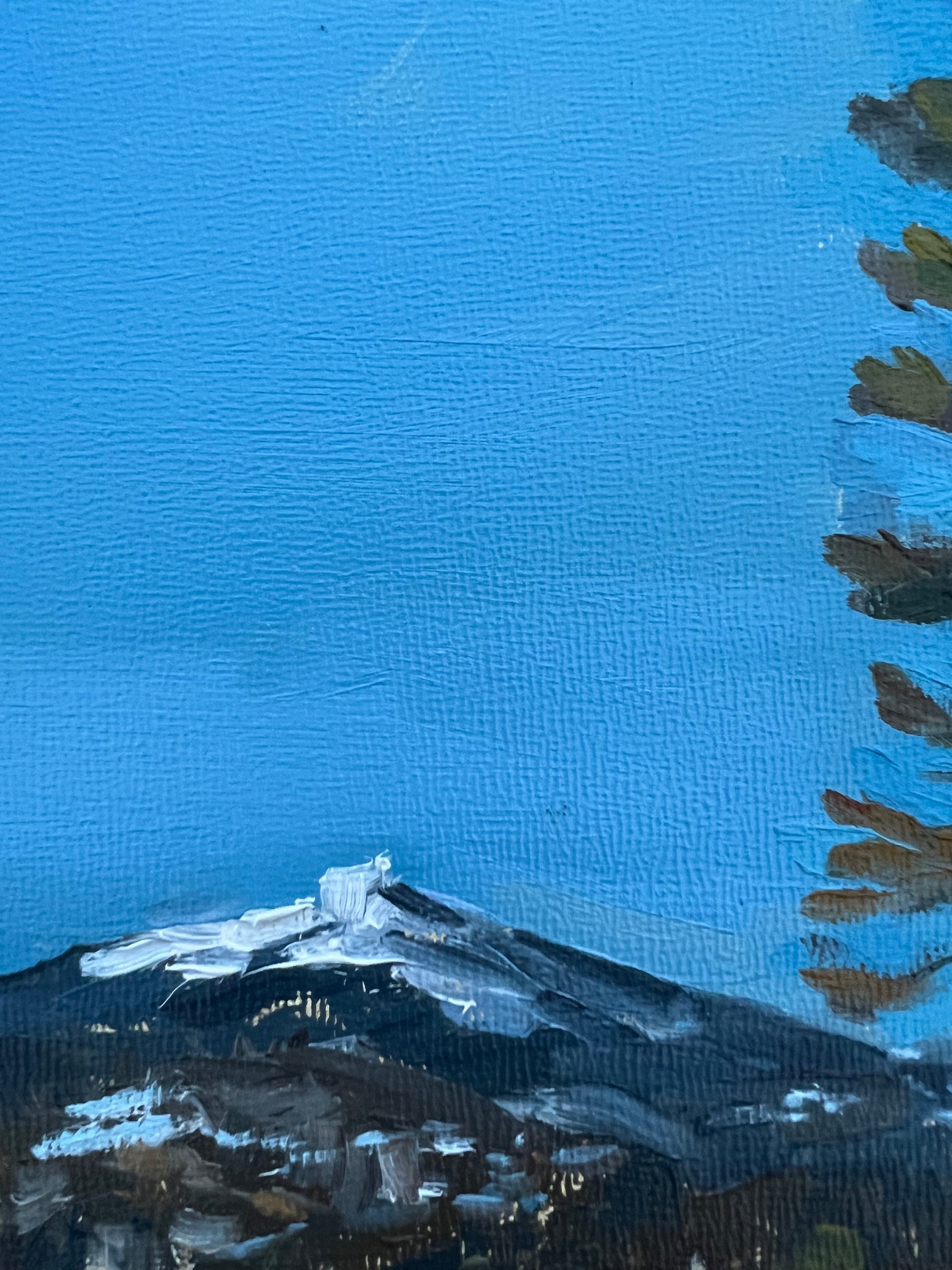 8" x 10" x 2" Original oil painting on birch gesso panel. Painted in January 2023 from the old '99 Siskiyou Summit on a very cold day.
