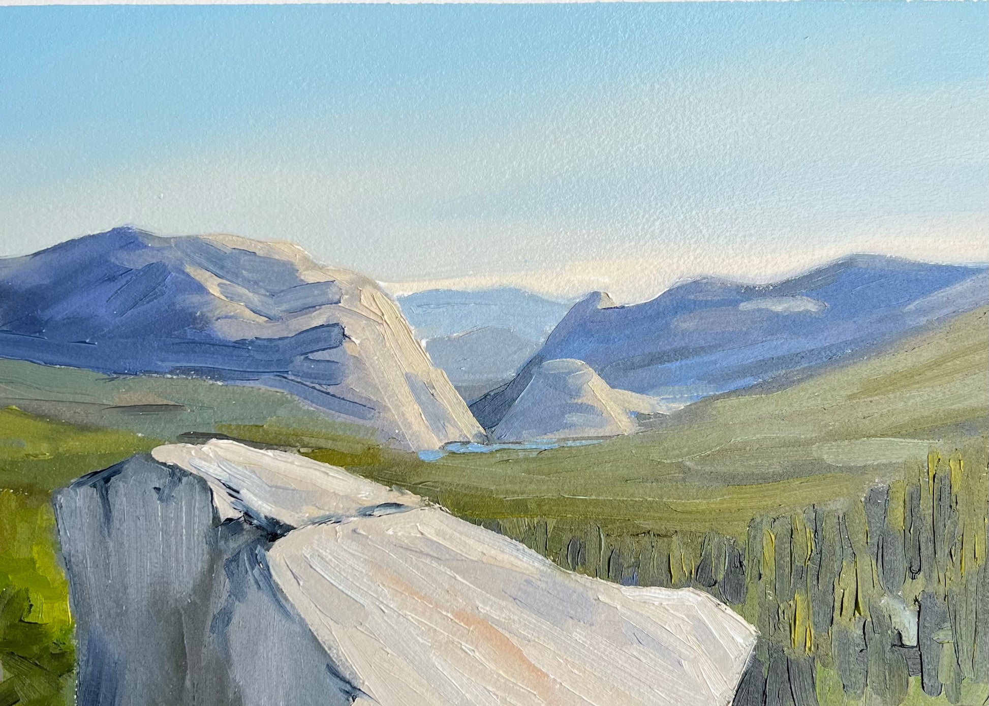 Original oil painting of Yosemite Valley granite monoliths from Olmstead point. 8.5" x 11" oil on Arches archival oil paper.