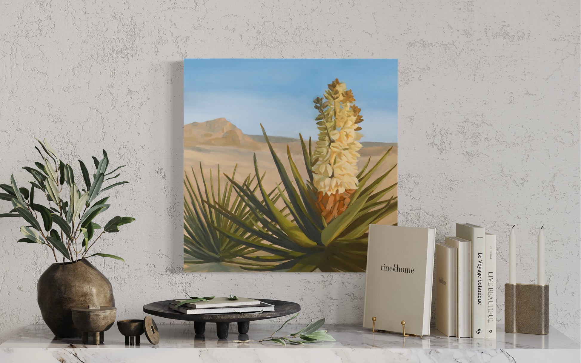 24" x 24" Oil on cradled panel. Yucca Valley, California yucca plant painting.